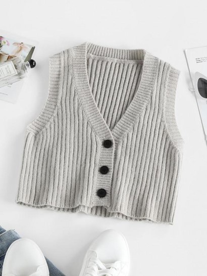 Button Up Crop Vest CardiganButton Up Crop Vest Cardigan