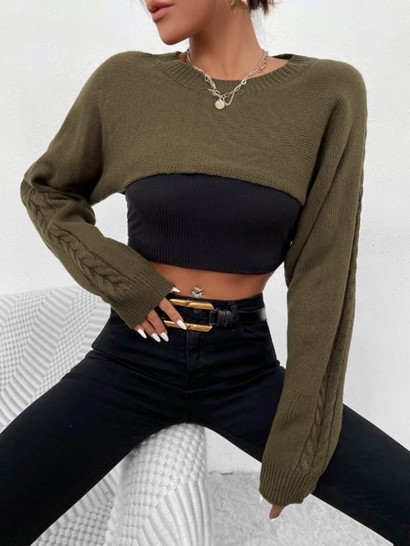 Be the first to review “Cable Knit Panel Shrug Sweater”