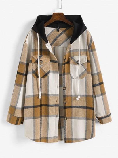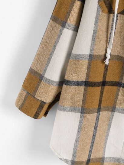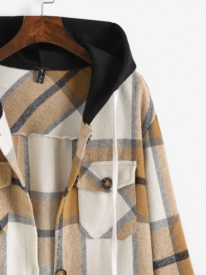 Be the first to review “Contrast Hooded Plaid Patch Pockets Coat”