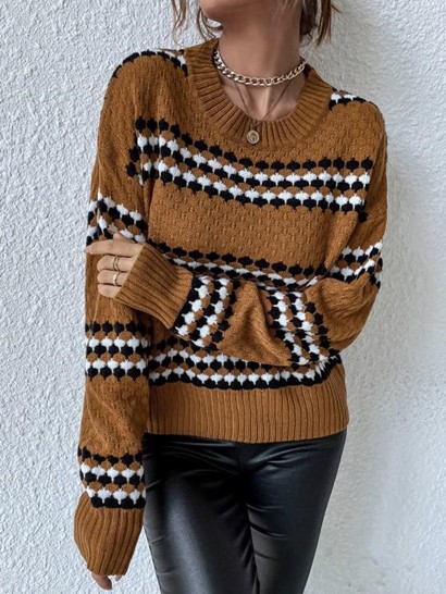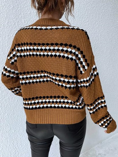 Contrast Striped Drop Shoulder Slouchy Sweater