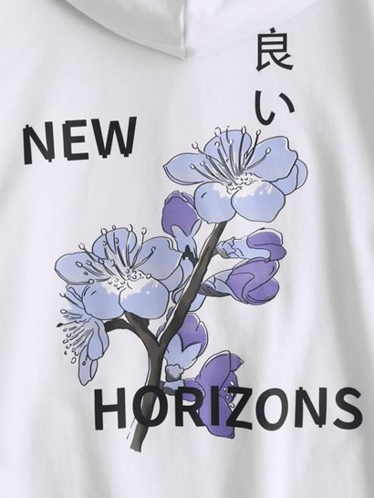 Cotton Flower Graphic Kangaroo Pocket Hoodie