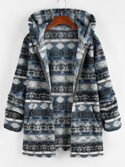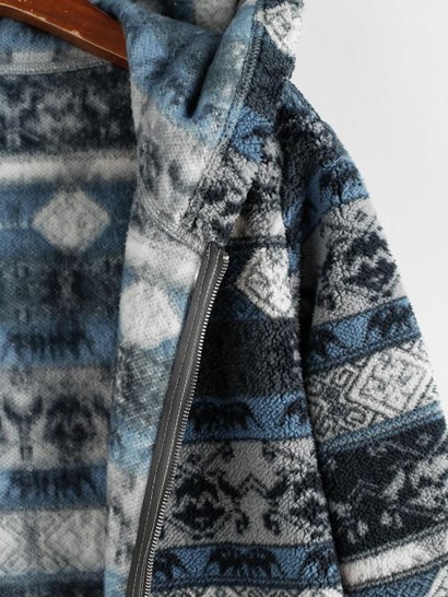 Ethnic Faux Shearling Zip Hooded CoatEthnic Faux Shearling Zip Hooded Coat