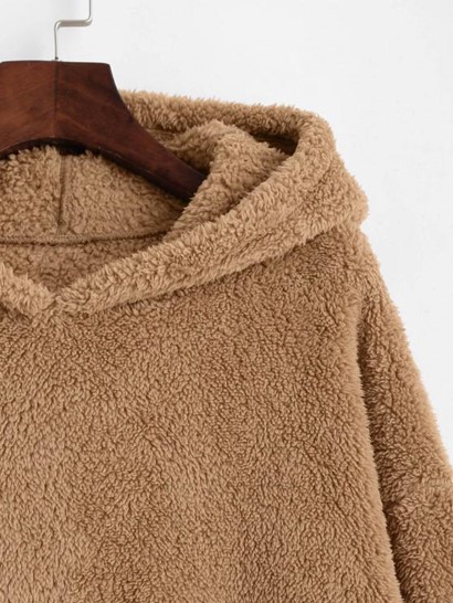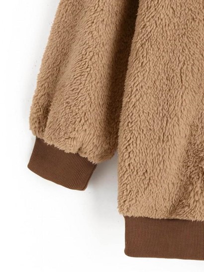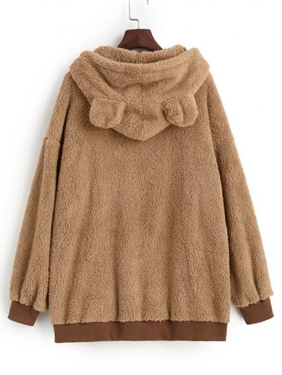 Faux Fur Bear Ear Pocket Fluffy Tunic Hoodie