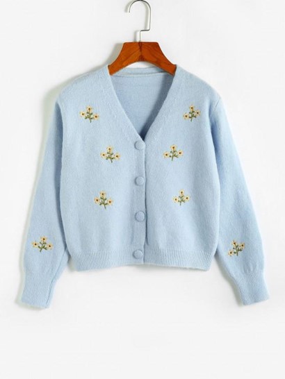 Floral Embroidered Button Up CardiganFloral Embroidered Button Up Cardigan