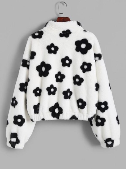 Fluffy Floral Graphic Faux Fur Jacket