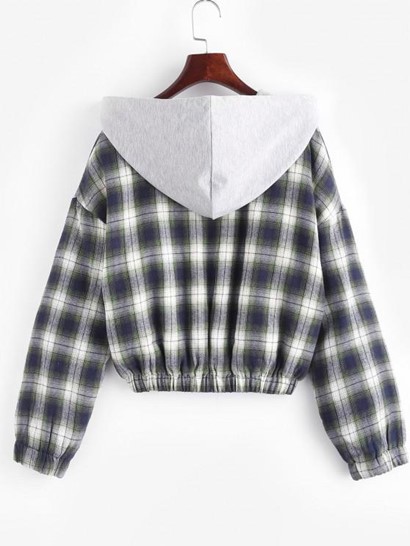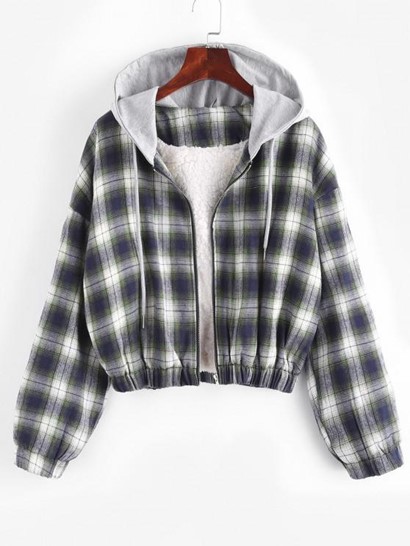 Fuzzy Flannel Hooded Faux Shearling Lined Plaid Jacket