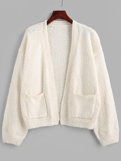 Open Front Solid Boucle Knit Cardigan