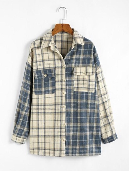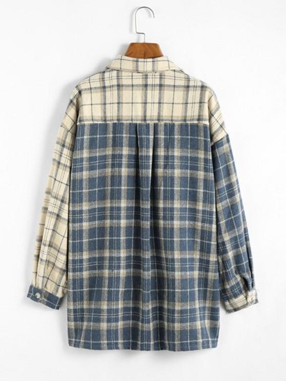 Plaid Colorblock Drop Shoulder Pocket ShacketPlaid Colorblock Drop Shoulder Pocket Shacket