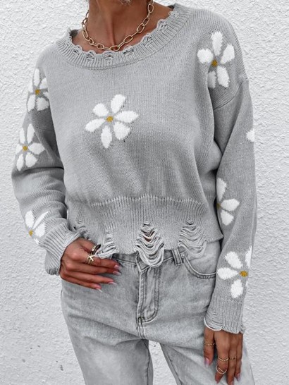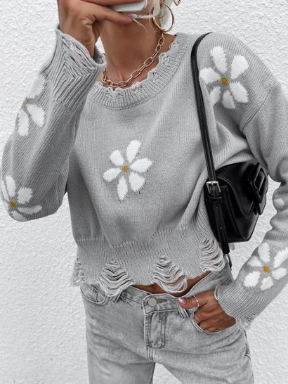 Ripped Distressed Flower Graphic SweaterRipped Distressed Flower Graphic Sweater