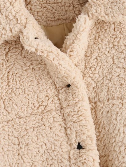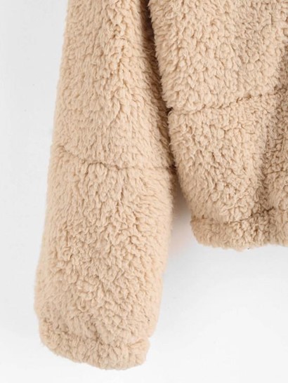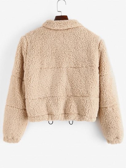 Snap Button Toggle Drawstring Teddy Coat
