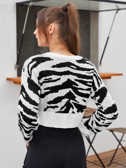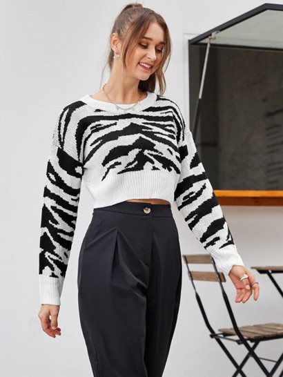 Tiger Print Cropped Sweater