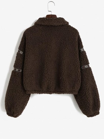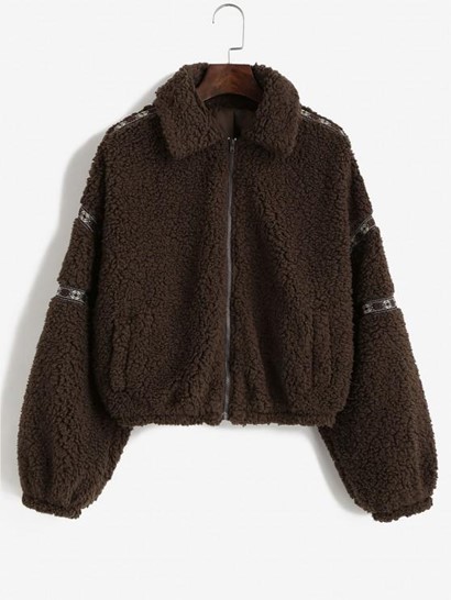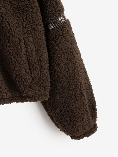 Tribal Tape Drop Shoulder Pocket Teddy Coat