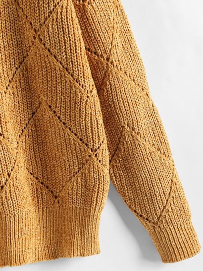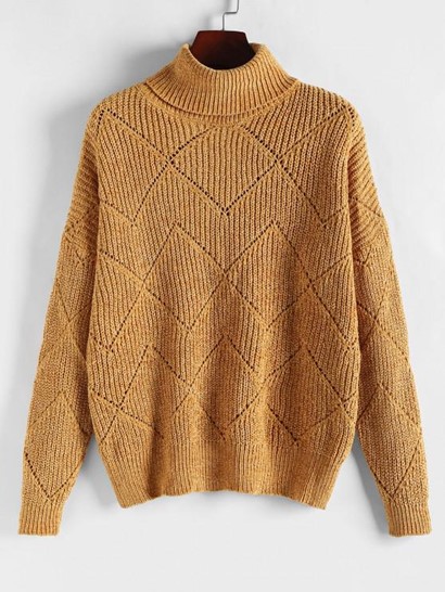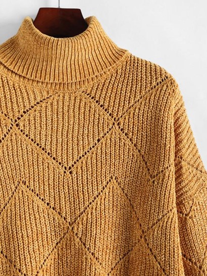 Turtleneck Chenille Pointelle Knit Sweater