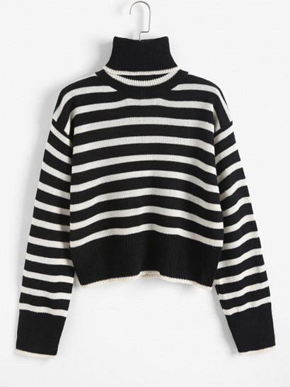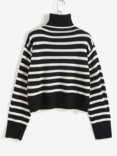Turtleneck Striped Drop Shoulder Sweater