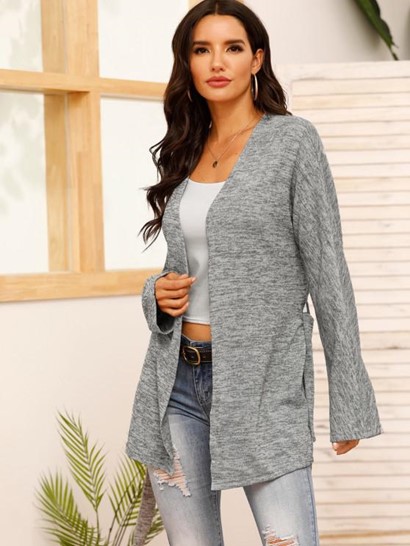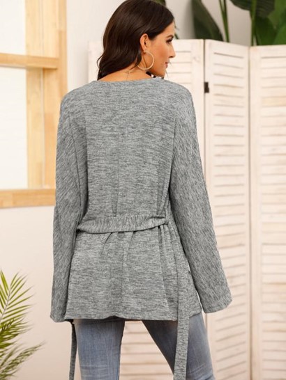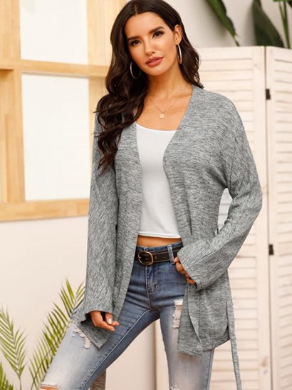 V Neck Belted Heathered CardiganV Neck Belted Heathered Cardigan
