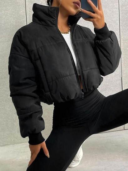 Zip Up Pockets Padded Coat